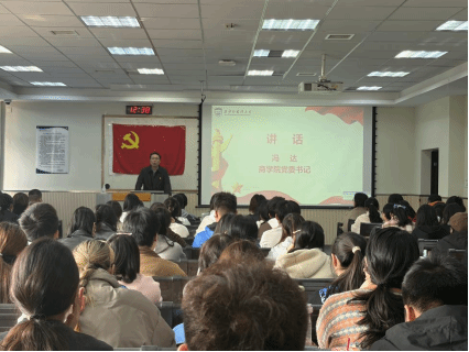 郑锐华以习近平总书记青年时期在梁家河的七年奋斗岁月为切入点,生动阐释“敢于追求、不怕吃苦、勤于学习、爱办实事、善于思考、勇于担当”六大品质。他结合习近平总书记克服“跳蚤关、饮食关、劳动关、思想关”的成长经历,强调青年学子要坚定理想信念,将个人理想融入国家发展大局。郑老师还分享了西安外国语大学优秀校友的先进事迹:程一堃的外交担当、郑丽的维和奉献、董宇辉的创新实践等,生动展现新时代青年将个人理想与国家使命相结合的榜样力量。