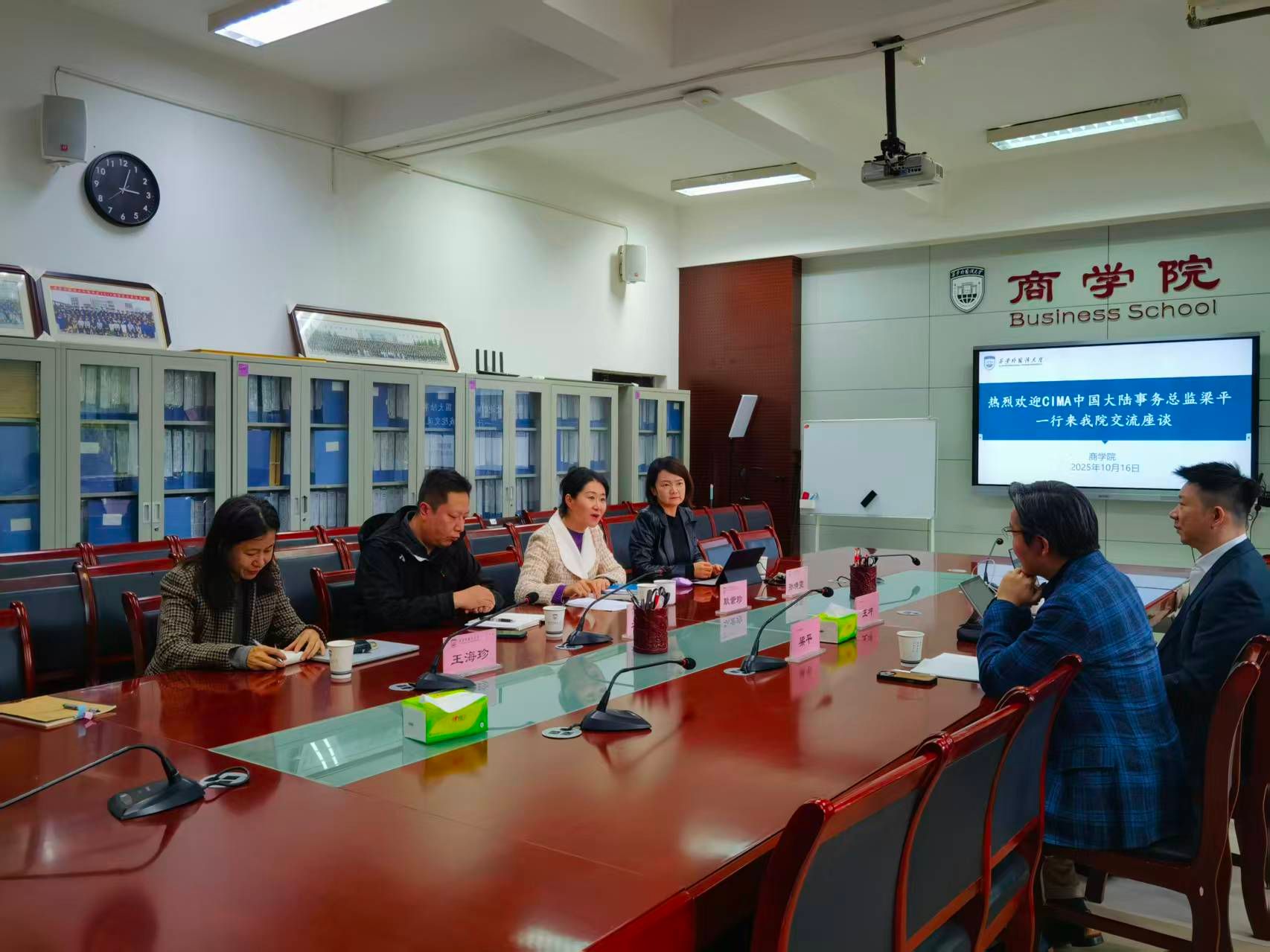 2025 年 10 月 16 日,CIMA中国大陆事务总监梁平一行莅临NG体育 ,围绕 CIMA 项目国际合作、人才培养创新等核心议题,与NG体育 领导班子开展深度交流座谈。NG体育 院长耿紫珍、党委书记冯达、副院长孙婧雯及工商管理系主任王海珍出席会议,共同为项目高质量发展凝聚共识。