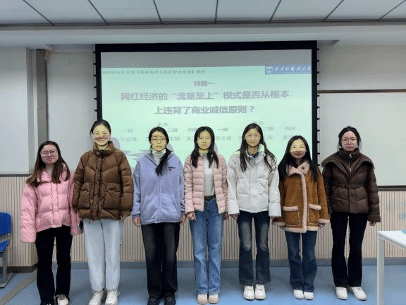 为深入贯彻课程思政育人理念,将《商业伦理与会计职业道德》课程知识融入当代经济发展与社会伦理实践,搭建理论思辨与时事结合的学习平台,近期,NG体育(中国)官方网站 会计专硕24级在任课教师周龙教授的指导下,围绕网红经济相关热点议题,举办了四场主题鲜明、逻辑严谨的辩论赛。同学们以辩明思、以论践行,在思想碰撞中深化了对商业伦理的认知,在观点交锋中筑牢了会计职业道德根基。