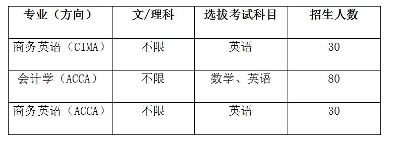(2)商务英语(CIMA)、商务英语(ACCA)教改班招生人数各达到20人方可开班。