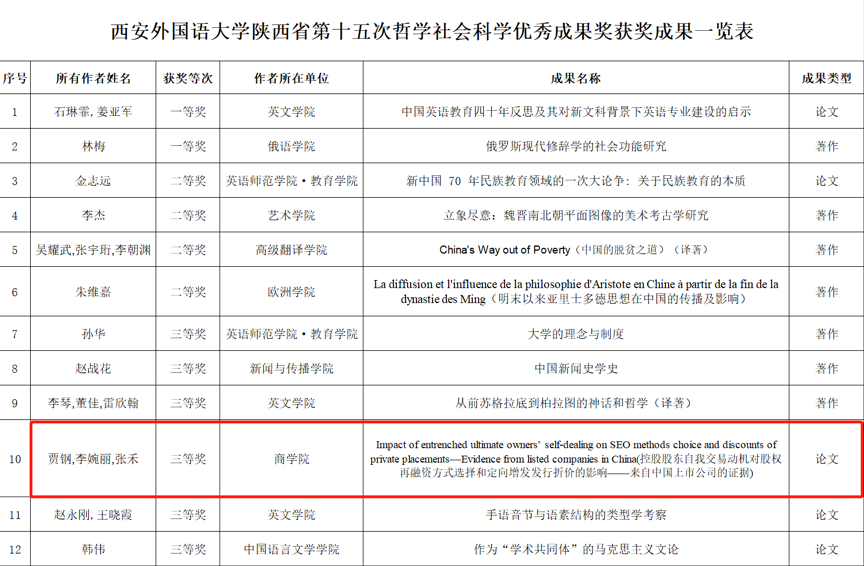 热烈祝贺NG体育 贾钢老师荣获陕西省第十五次哲学社会科学优秀成果奖三等奖。