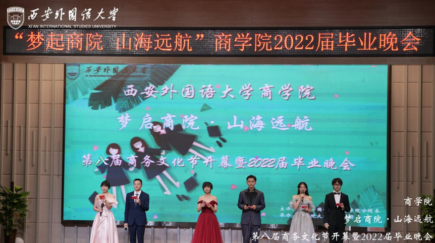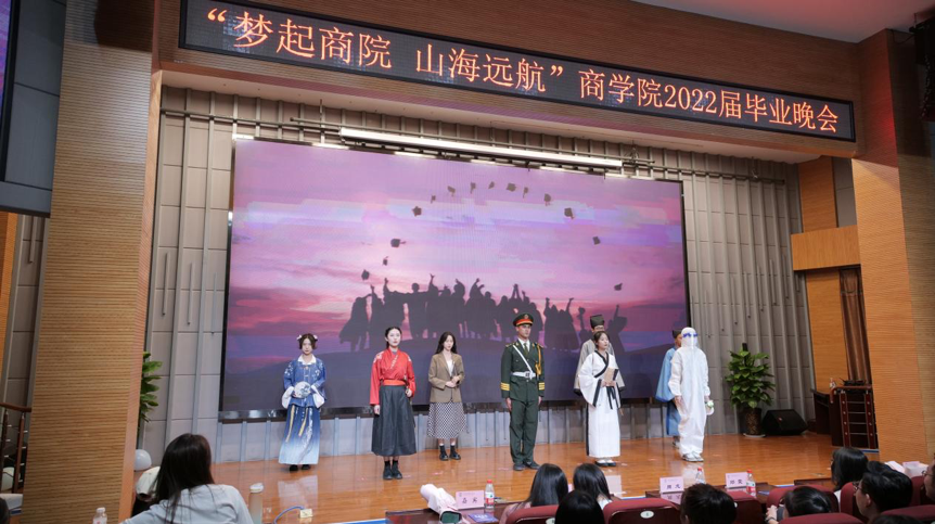春晖泽桃李,繁花簇前路。为送别2022届毕业生,表达对毕业生的美好祝福,引导学生弘扬爱国主义精神,厚植家国情怀,以实际行动向党的二十大胜利召开,建校七十周年及建院二十周年献礼。6月20日晚,NG体育 在JA111举办“梦起商院 山海远航”第八届商务文化节暨2022届毕业生晚会。院长周龙、党委书记邓雯、党委副书记兼副院长张晶、教师代表、行政干部、辅导员以及近50名学生参加本次晚会。按照学校疫情防控的要求,此次晚会以“线下主会场+线上分会场”的方式举行,共计500余人参加观看。