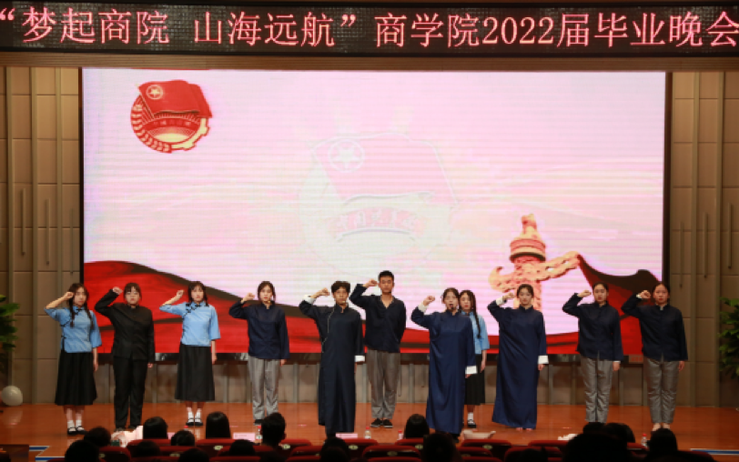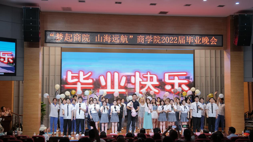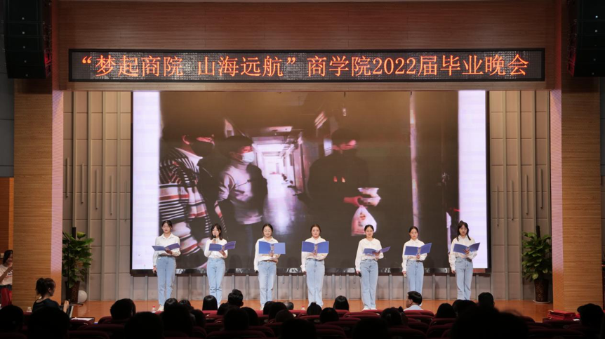 晚会分为“商遇•正青春”“成长•情谊浓”“启航•新征程”三个篇章,串联起同学们对大学四年最美芳华的回忆、对师长亲友的感恩以及对奋进新征程、建功新时代的决心。本次晚会从节目编排到篇章设计充分融入爱国主义教育、爱校荣校教育、感恩教育,是学院送给毕业生的一份特殊“暖心毕业礼”,也是为毕业生上的最后一堂鲜活生动的“思政课”。
