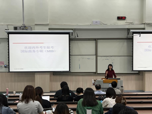 在国际商务专硕考研情况介绍中,薛晋洁老师通过生动的图片和实例展示了国商专业的培养特色,今年NG体育 国商专硕研究生的培养大力创新,通过时间前置、导师双选等方式,延长学制,为同学们做好生涯规划保驾护航。同时,薛晋洁老师通过NG体育 国商专硕研究生对导师的评价向大家展现了亲切又强大的导师团队,优厚的师资力量能够为研究生的发展做出全方位的指引。