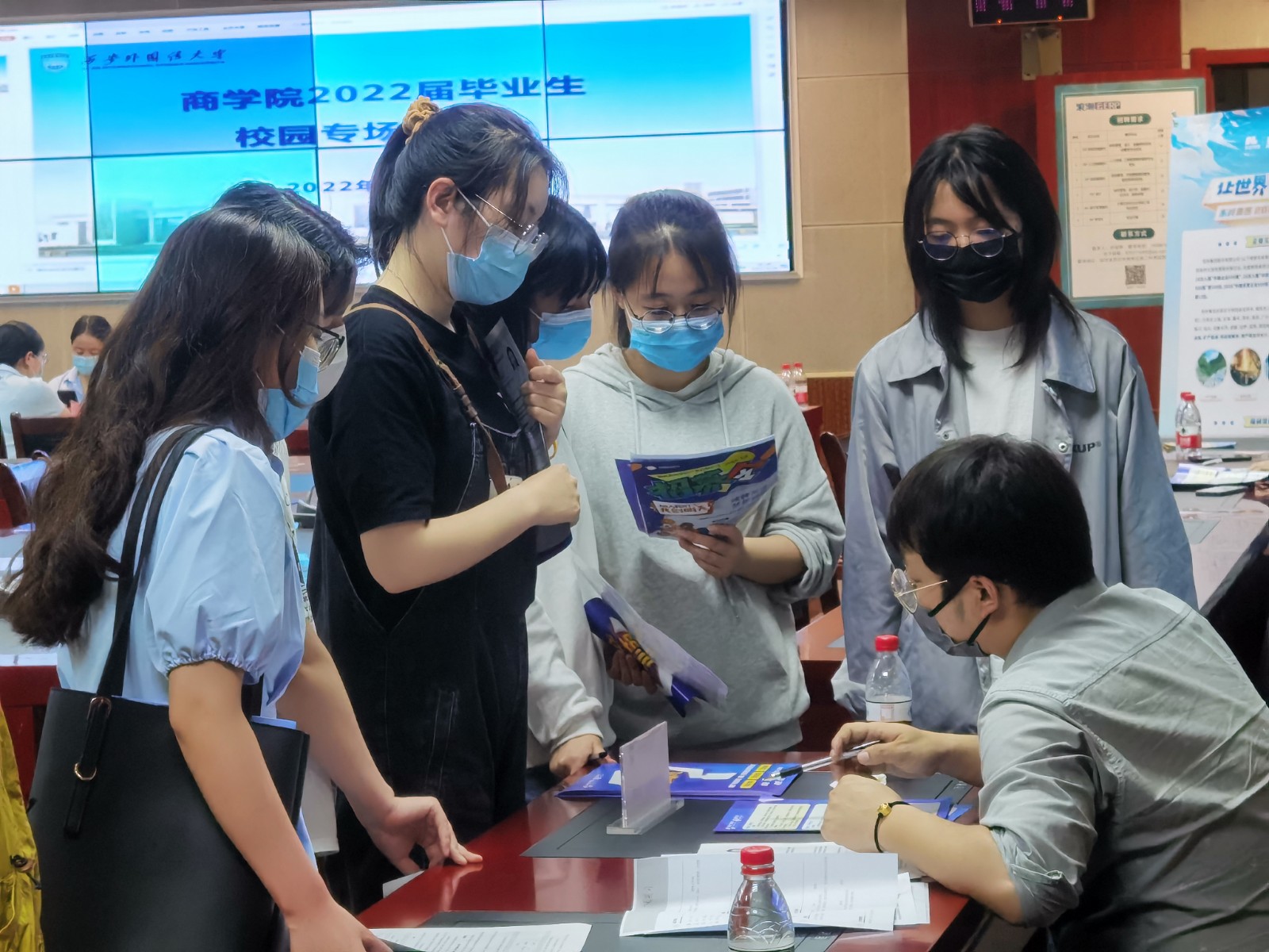本次专场招聘会共邀请5家企业进校,分别是陕西重型汽车进出口有限公司、陕西广电网络传媒(集团)股份有限公司西安分公司、东岭集团股份有限公司、陕西明珠家居产业有限公司和北京软峰时代科技集团西安分公司。参会企业规模大,行业涉及出口外贸、市场策划、电子商务等多个领域,与NG体育 毕业生专业适配度高。招聘会现场气氛热烈,各公司展位前应聘毕业生排起了长队,同学们积极与公司招聘代表沟通交流,详细咨询公司情况及招聘岗位需求。