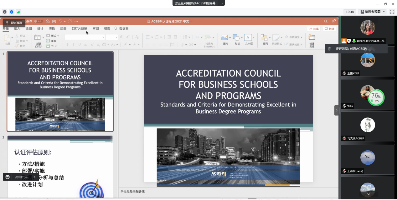 年3月22日,美国NG体育 认证委员会(ACBSP)中国区事务处与NG体育 共同举行认证工作推进会与流程培训会,会议通过腾讯会议线上进行。ACBSP中国区主任彭彦与马天瑞、NG体育 党委书记邓雯、副书记张晶、各系主任唐慧利、朱金凤、王海珍、孙婧雯与薛晋杰参加了会议。会议由副院长王鹏主持。
