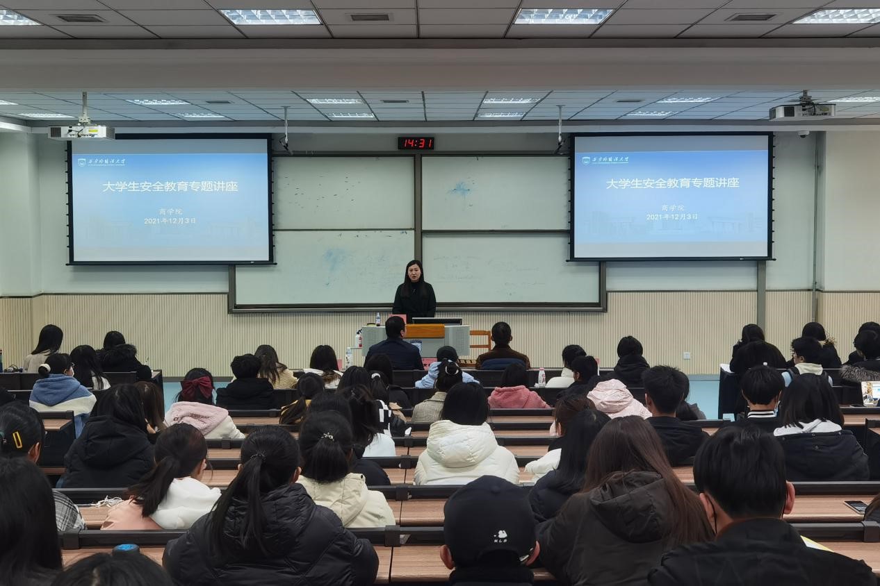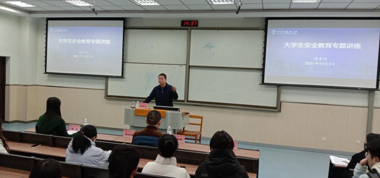黄利峰结合近年来全国高校及学校发生的真实案例,以大学生违规违纪行为、交通安全、财务安全、住宿安全、饮食安全、野外实践安全、实习安全、消防安全、防范电信诈骗等方面为重点,生动地为同学们讲授了预防各类安全问题的意义和方法,并要求和勉励同学们树立“预防为主,防消结合”的观念,提高风险防范意识和责任意识,筑起思想、行为和生命的安全长城,防微杜渐,居安思危,共同携手构建平安校园。