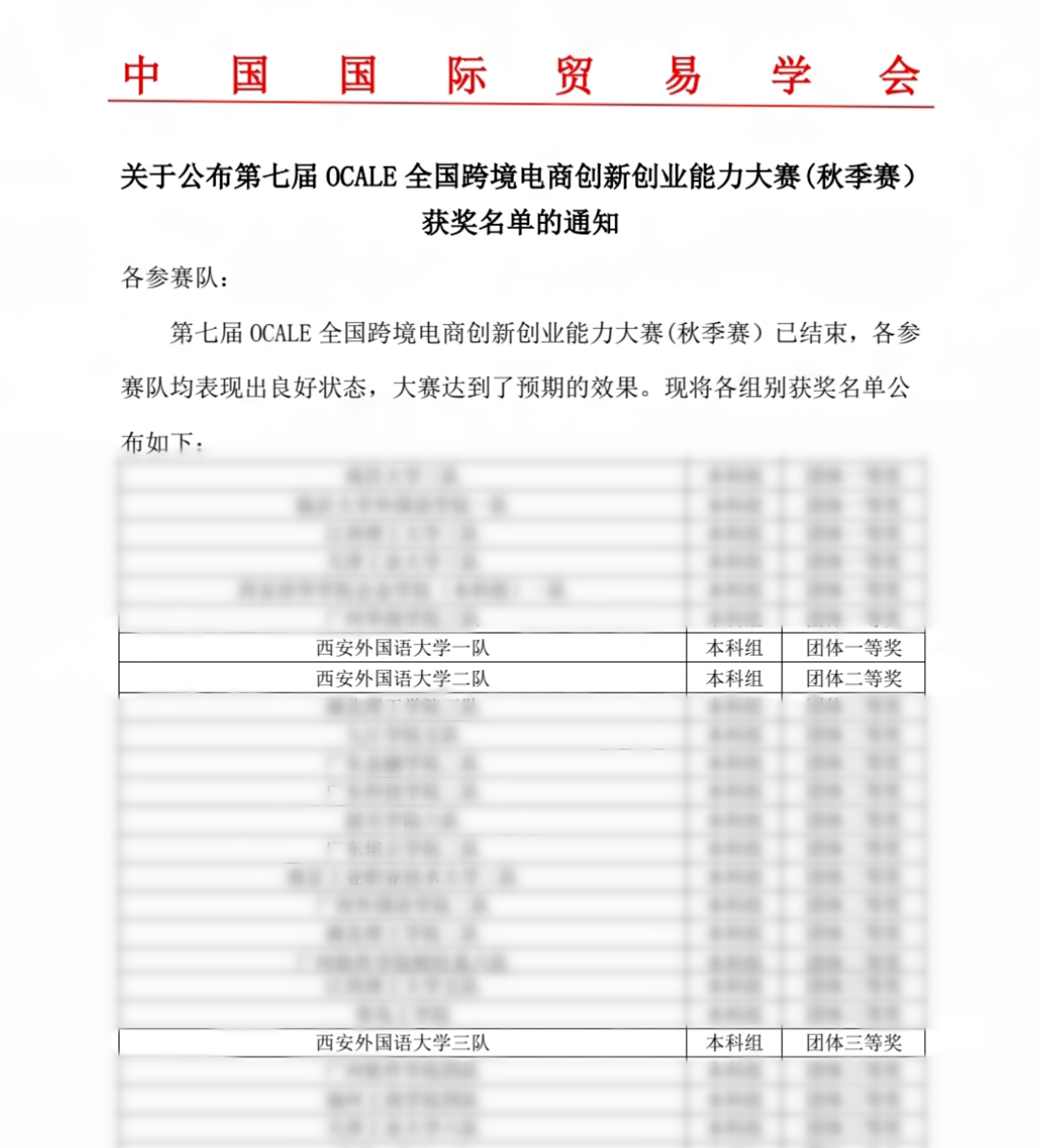 2021年11月15日 - 17日,由中国国际贸易学会、全国外经贸职业教育教学指导委员会举办的第七届OCALE全国跨境电商创新创业能力大赛(秋季赛)通过线上比赛方式进行。本次大赛共有来自于全国326所高校1035支参赛队(其中本科组511支)参加。经过校内选拔,NG体育 市场营销系、工商管理系、商务英语系、会计系学生组成的三支参赛队伍代表学校参加比赛。经过激烈角逐,三支队伍在本科组赛道分获一、二、三等奖。