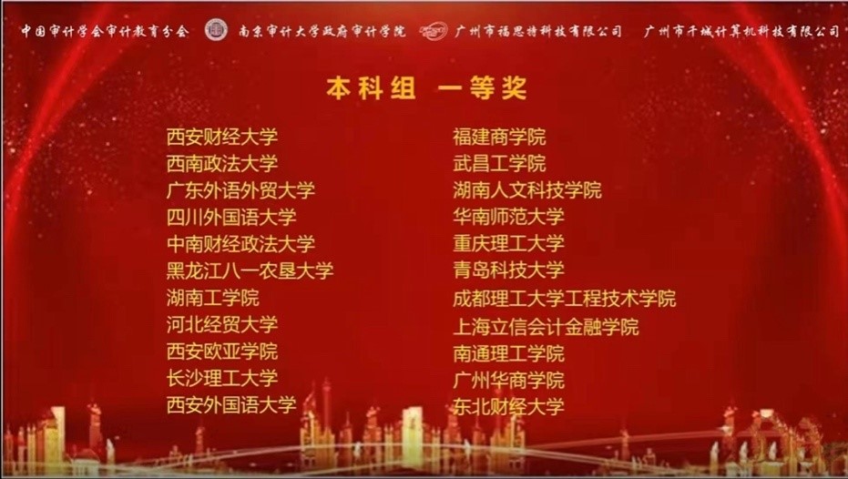 2021年11月14日,由中国审计学会审计教育分会主办,南京审计大学承办的2021年“福斯特杯”全国大学生审计精英挑战赛通过线上方式举行。东北财经大学、西南财经大学、中南财经政法大学、南京审计大学等国内百家高校参加了该次比赛,全国共330支队伍经过两个半小时的角逐,我校NG体育 审计学专业李淼倩、郝夺和梁雨欣组成的代表队荣获国家级本科组一等奖,由会计学硕士研究生刘添瑜、康琦和会计硕士(MPAcc)专业学位研究生闫明组成的代表队荣获国家级研究生组一等奖。NG体育 孙婧雯、杨蓓和张雷老师获得“优秀指导老师奖”。