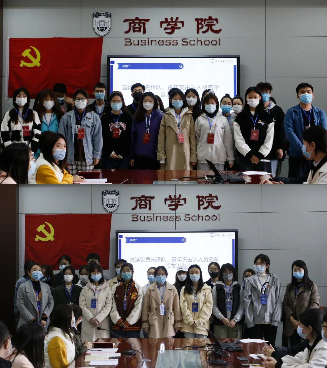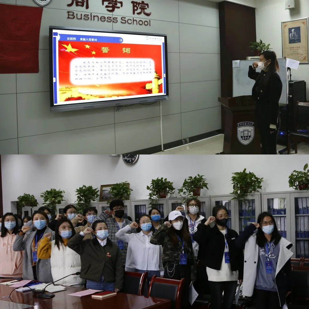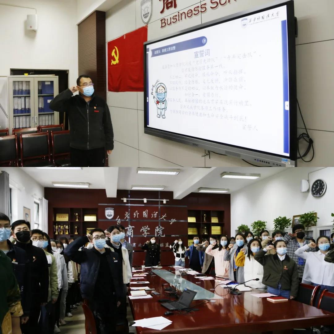 张晶和艾勃成分别带领与会党员重温入党誓词、进行防疫工作宣誓,在庄严的气氛中进一步为大家坚定责任意识,筑牢思想防线。