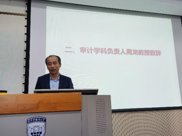 周龙首先代表学院致欢迎词,他指出新时代赋予了审计专业更重要的职责与发展机遇,建议审计专业的学生认真学习专业知识,练就过硬的专业本领;多读书,开阔眼界;广交友,培养良好沟通能力,以为未来投入中国审计事业奠定扎实的基础。其后,审计专业带头人乔引花教授为学生们讲述了审计专业的历史变革以及重要性,鼓励学生们努力学习专业知识,为审计专业的发展增砖添瓦。接着,审计系主任孙婧雯副教授详细介绍了审计专业设置、专业现状、师资队伍、工作就业以及学生在校社团生活等内容,为新生解惑大学生活。她建议同学们提前规划、逐步实施与定期总结,以收获充实而有意义的大学生活。最后,优秀学生代表——2019级审计班班长周鹏飞与新生分享自己学习经验以及丰富多彩的大学生活。