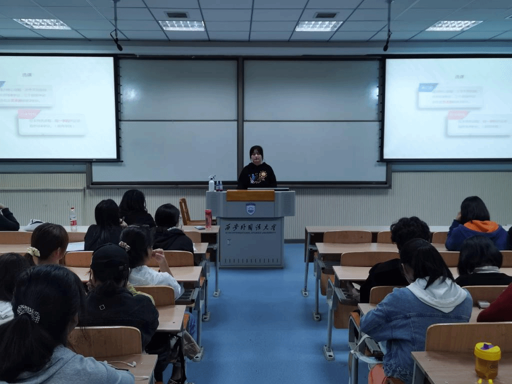 首先,桑晓靖教授作为教师代表发言,她提出大学生活不仅是为了学习知识、掌握技能,鼓励工商管理系新生应该积极融入大学生活,不断完善人格。接着,系主任单春霞副教授介绍了工商管理系师资队伍、专业设置、专业现状、工作就业等内容,并针对市场经济需要,培养创新创业实践能力和国际视野的应用型工商管理专业人才,从专业培养目标、培养要求、学科特色方面进行了详细的介绍。最后邀请了工管专业高年级优秀学生代表分享在校期间的保研、学习、比赛、考试以及学生在校社团生活等方面的经验。