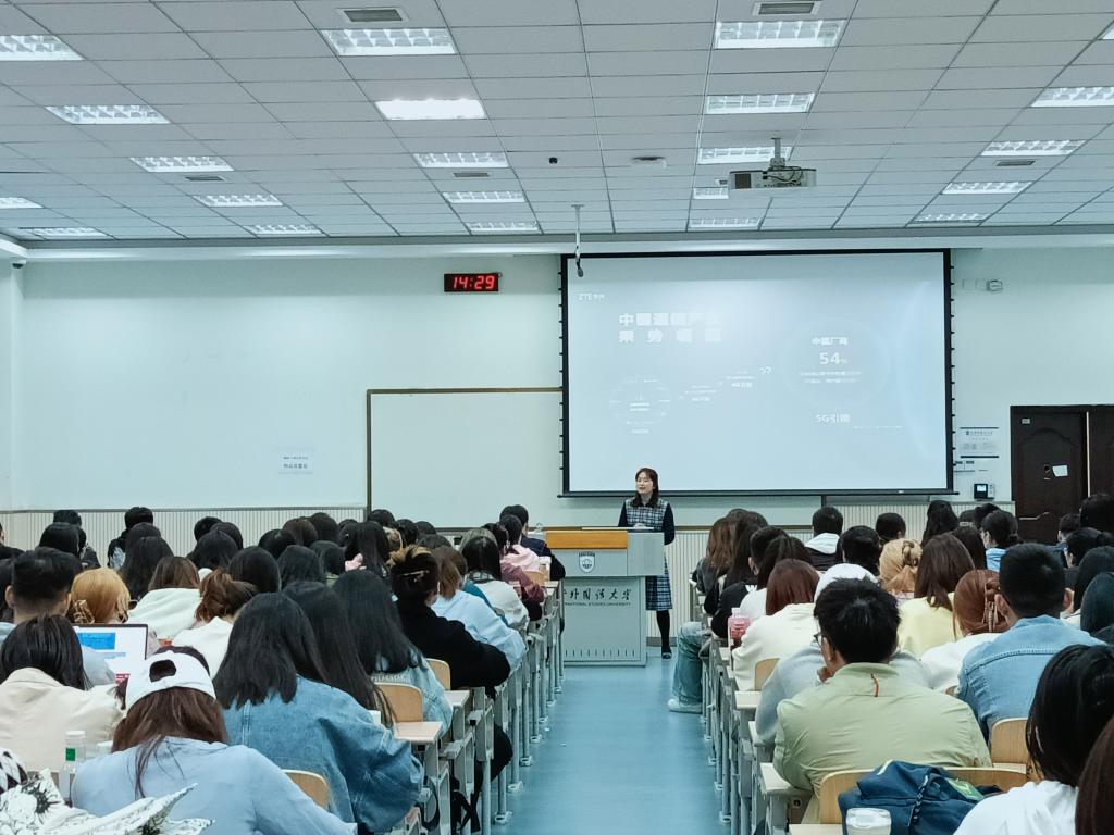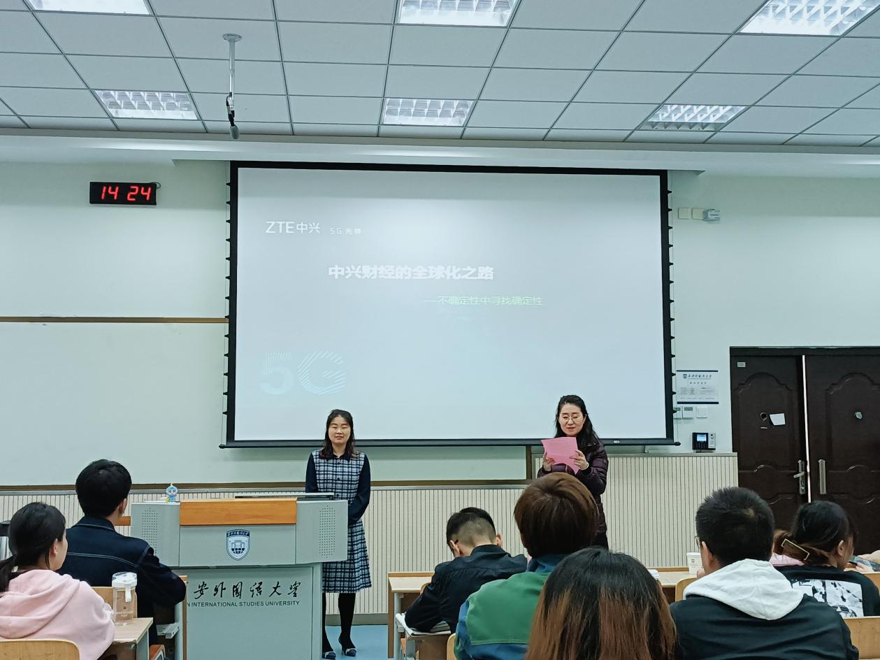 讲座中,郑部长简述了中兴通讯成立36年以来的发展历程,介绍了中兴通讯当前的业务范畴以及目前在中国通信行业的战略定位。她以“中兴财经全球化之路”为主题,分享了中兴财经在全球化过程中面对时差、文化、语言、财务管理、人员与团队等不确定性的问题。她讲到,中兴财经通过适时启动转型,实现国内财务共享、全球财务共享,进而实现财务职能的重构与升级,展现了财务共享服务为企业带来的变革,帮助组织从不确定性中寻找确定性。随后,她通过一段视频分享了中兴财经的全球化战略之路,她强调全球化企业应调整认知以及经营策略来应对和管理未来发展的不确定性。最后,她通过分享中兴财经的数字化转型历程,分析了数字化时代下的财务变革趋势以及财务人才素质模型,就财务人员自身如何转型,给予在场的同学们建议和启发。