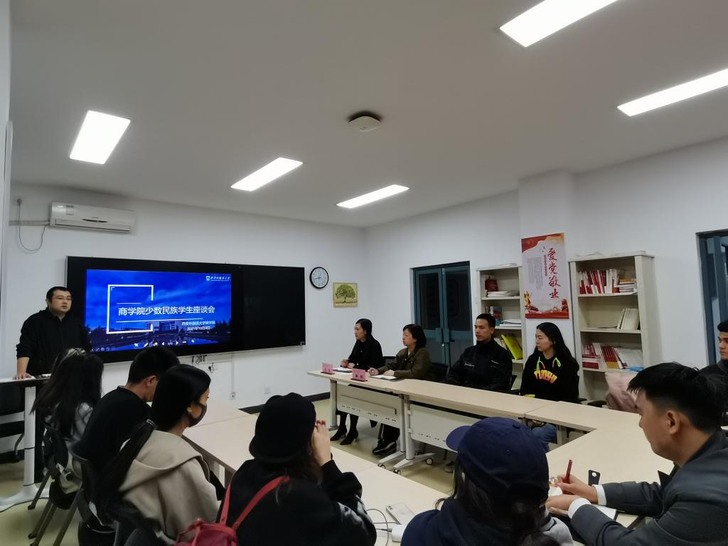 为进一步强化育人工作的针对性和实效性,加强与少数民族学生的沟通交流,关心少数民族学生的健康成长,推进各民族学生交流交融,2021年10月9日,NG体育 在学校1B公寓党团组织工作站召开少数民族学生代表座谈会。学院党委副书记兼副院长张晶、综合办公室主任杨彩霞、各年级辅导员及少数民族学生代表参加会议。会议由学院2021级辅导员、少数民族学生专干艾勃成主持。