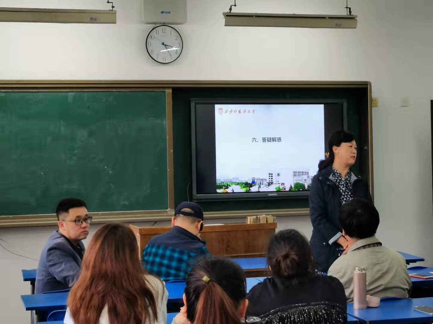 最后环节是“答疑解惑”,赵晓罡教授、朱美琳主任、白少君教授、桑晓婧教授、王敏副教授依次详细耐心地解答了同学们关于毕业要求、毕业条件、考博、学术与实践等相关问题,并表示将会在今后的学习中继续给同学们进行更专业、更详细的指导。