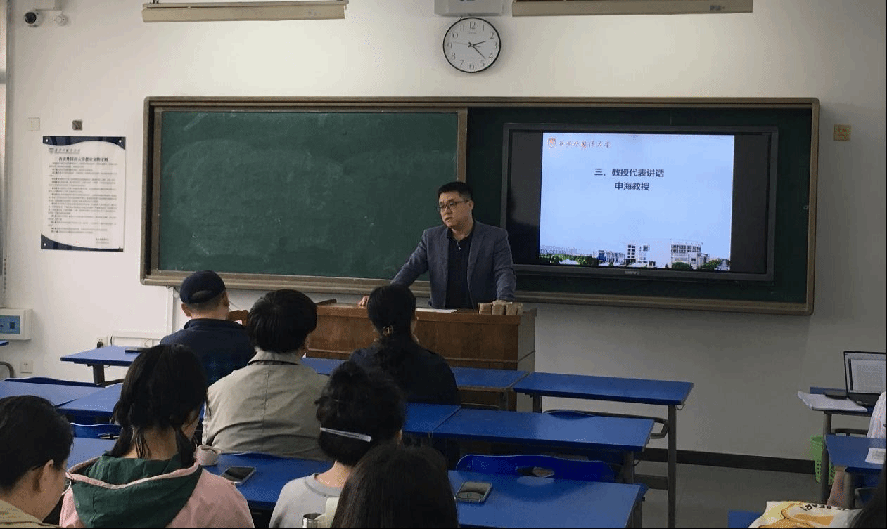 首先,申海教授代表学院导师对2021级国际商务及企业管理硕士新生致辞。申教授对新同学们加入西外NG体育 表示了热烈欢迎,同时也提出了对同学们的殷切期望,能够胸怀大志心怀理想,保持良好的心态,希望大家能够以感恩之心,在未来研究生两年或三年的学习生活中潜心求学,有所收获,表达了学院对大家在研究生阶段的学习生活和心态调整等诸多方面的期许。