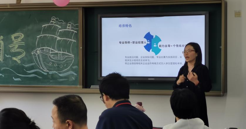 其后,市场营销系主任常亮副教授通过当前各种时代前沿案例,为学生声情并茂地为新生介绍市场营销专业特色、培养方案、历年就业、毕业数据信息等,为专业新生对本专业四年学习与生活及未来发展提供进一步详细的解读。