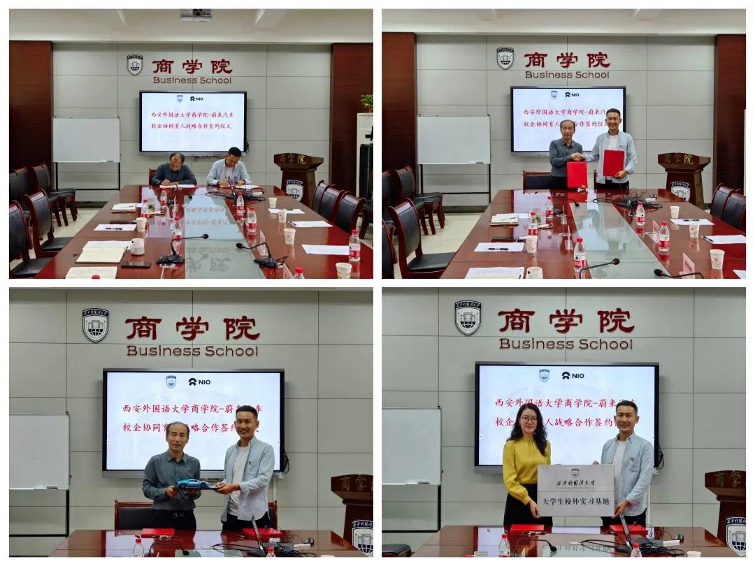 随后,周龙与师剑峰分别代表校企双方签订了战略合作协议,邓雯向蔚来汽车授牌“西安外国语大学大学生校外实习基地”。