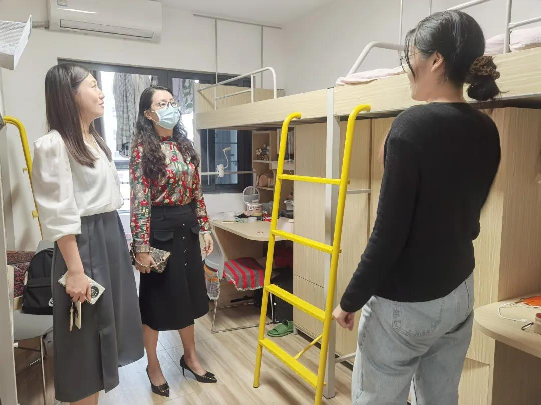 走访过程中,学院领导们对返校学生表达了亲切的问候,并询问7号研究生女生公寓搬迁后学生住宿生活的基本情况。同学们纷纷表示感谢学校提供优质的住宿条件,新学期将会以饱满的热情投入到学习生活中。听取学生的反馈后,邓雯嘱咐返校学生做好个人疫情防控,每日按时完成“晨午检”打卡,注意宿舍卫生环境,定期开窗通风,她强调研究生期间要将专业课学习放在首位,打牢基础为未来实习求职做好铺垫。张晶鼓励2020级本科学生提前做好大学生涯规划,考取专业资格证书,为未来求职做好准备。此外她告诫返校学生防范网络诈骗,做好个人人身财产安全防护。