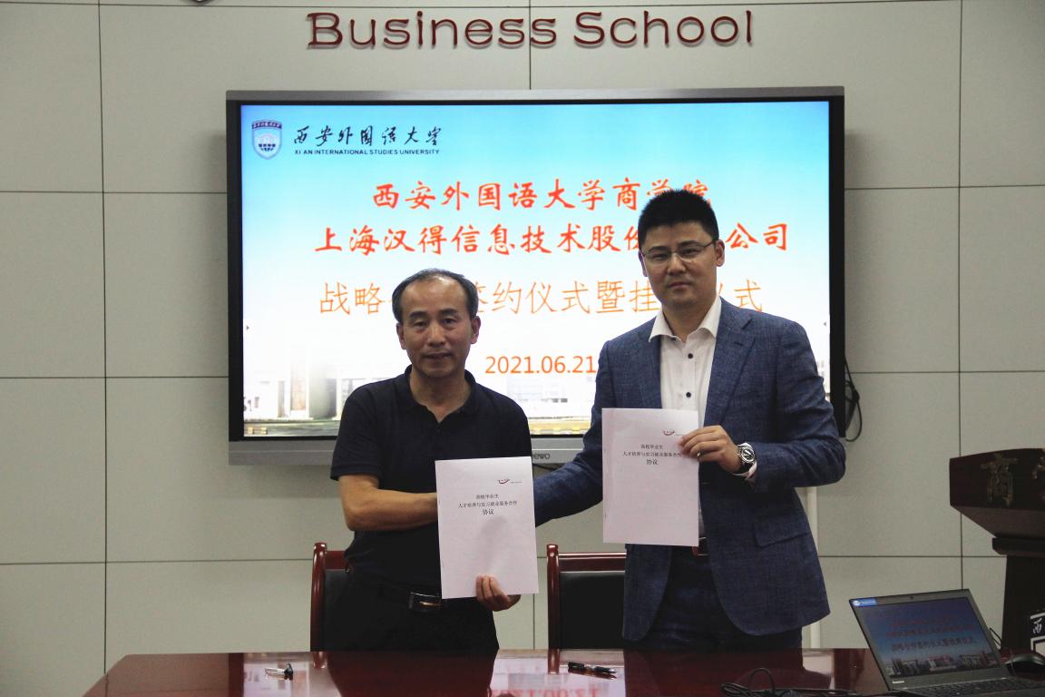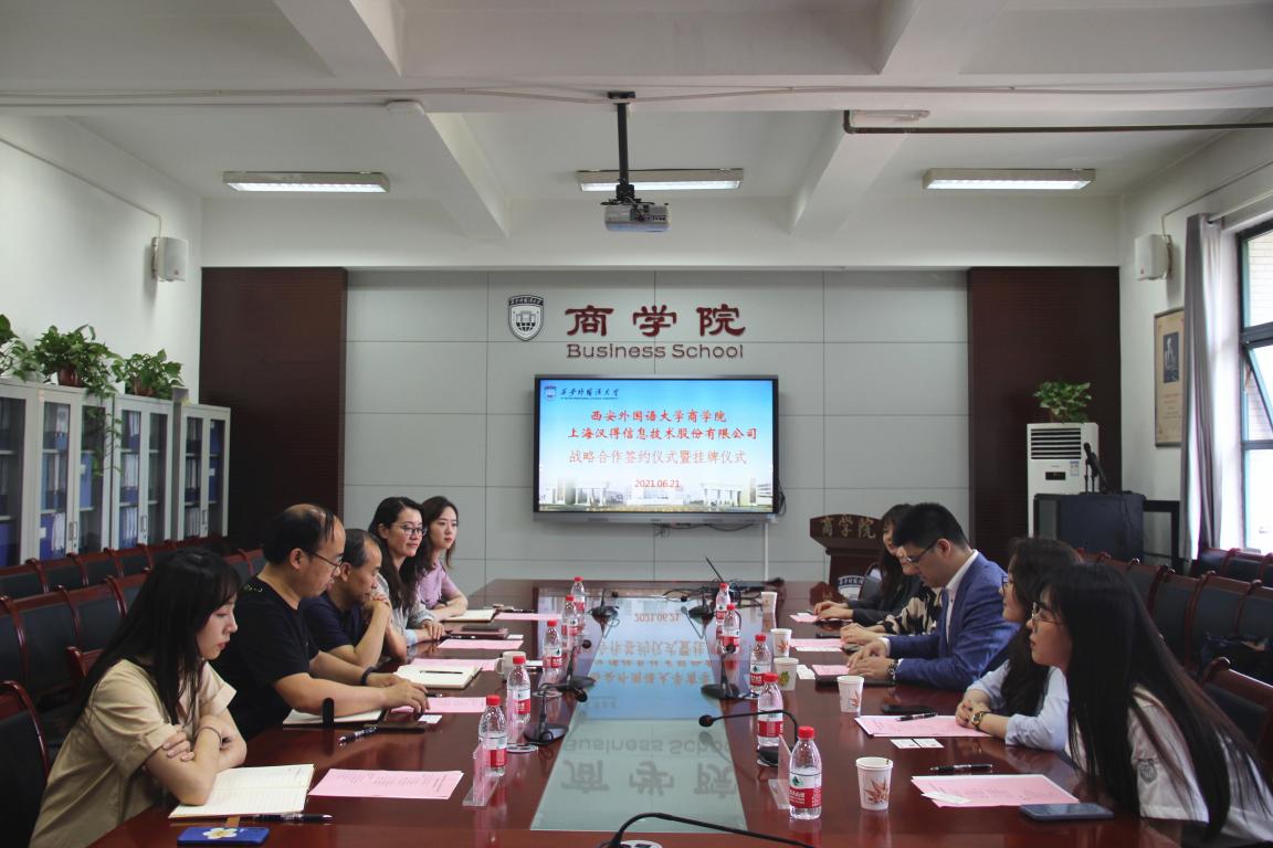 为进一步完善校企合作育人机制,创新人才培养模式,全面提高人才培养水平。2021年6月21日下午,NG体育 与上海汉得信息技术股份有限公司举行校企合作签约仪式和校外实习基地挂牌仪式。汉得公司汉得学院总经理郭少博、高级经理陆娣、招聘主管乔晨、NG体育 院友高雨蒙、回梦雪,NG体育(中国)官方网站 院长周龙、党委书记邓雯、副院长王鹏、组织员兼学工办主任常姗姗和辅导员马佳音参加了仪式。