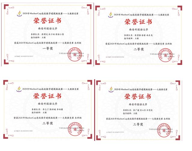 近日,由中国优选法统筹法与经济数学研究会主办的“MathorCup高校数学建模挑战赛——大数据竞赛”经过激烈的角逐后终于落下帷幕。本次竞赛共吸引来自全国363所高校共计1548支队伍参赛。NG体育 工商管理教研室主任王敏副教授积极组织并指导学生组队参赛,最终获得一等奖一项,二等奖一项,三等奖两项的优异成绩。