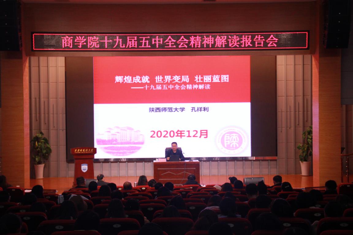为深入学习贯彻党的十九届五中全会精神,加强党员政治理论学习,12月9日下午,NG体育 联合校党委宣传部、校资产管理处,特邀陕西师范大学博士生导师孔祥利教授作了题为《“辉煌成就 世界变局 壮丽蓝图”——党的十九届五中全会精神解读》的专题报告会,NG体育 师生党员、积极分子、校十九届五中全会精神宣讲团成员、校资产管理处行政干部等150余位党员参加。报告会由NG体育 党委书记周龙主持。