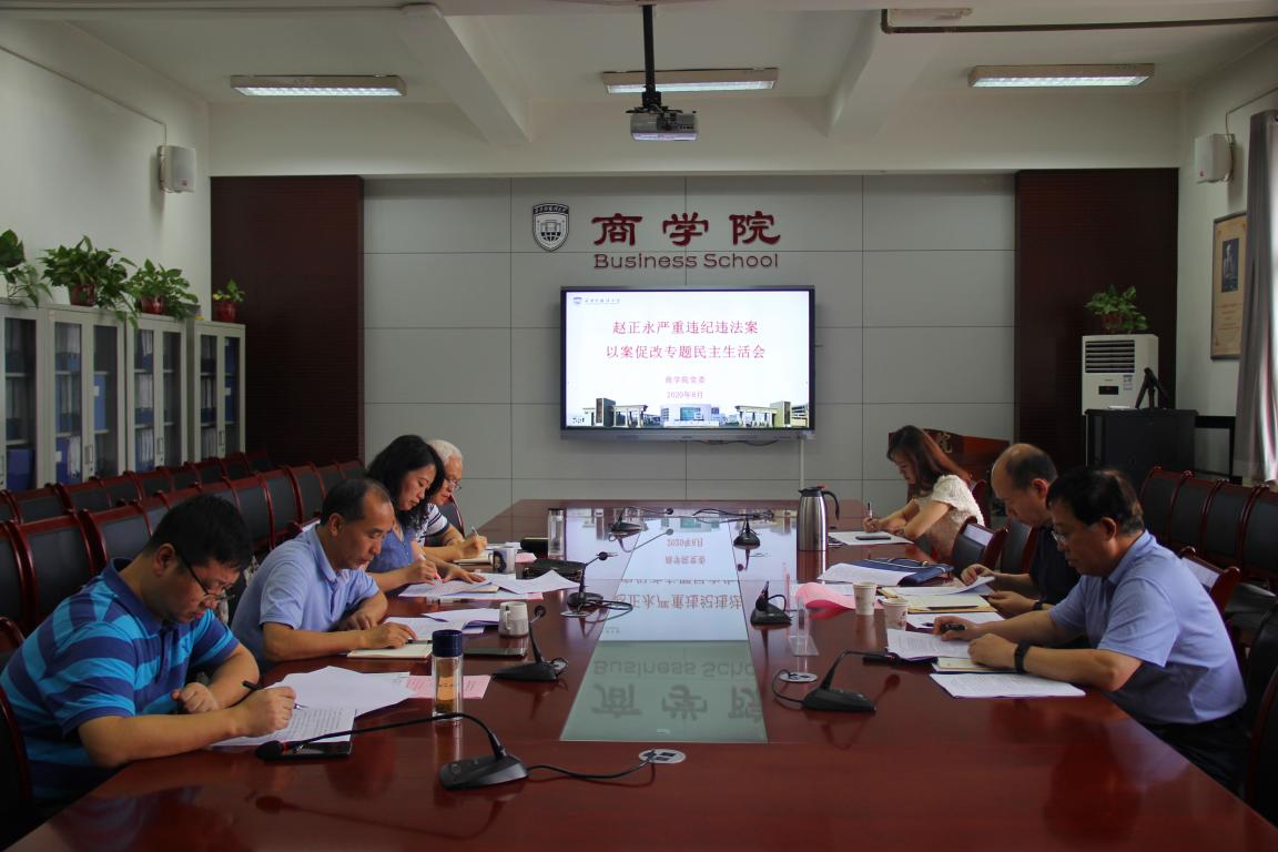按照校党委《关于认真开好赵正永严重违纪违法案以案促改专题民主生活会和组织生活会的通知》要求,2020年8月30日下午,NG体育 党委在教学楼G210会议室召开赵正永严重违纪违法案以案促改专题民主生活会。督导组成员校党委委员、纪委书记王强,纪委副书记田学文2人到会指导,学院党员处级领导周龙、杨霞、刘军伟、郑海平参加会议。会议由院党委书记周龙主持。