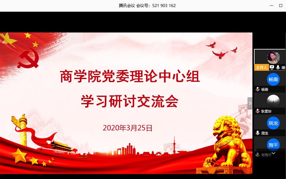 为深入贯彻落实习近平总书记关于打赢疫情防控阻击战重要指示精神和全面从严治党主体责任规定,深入学习学校2020年工作要点,3月25日下午,NG体育 党委组织召开了本学期第一次理论中心组学习研讨交流网络视频会议,全体中心组成员参加了学习,会议由党委书记周龙主持。