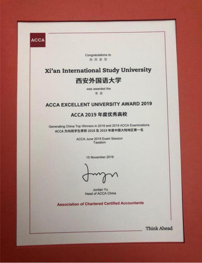 我院自2007年开设会计学ACCA教改班,2012年开设商务英语ACCA教改班,以我校优厚的外语语言资源为基础,将学历教育与会计国际职业资格相结合,走出一条培养以英语作为工作语言的国际化会计人才之路,取得了一系列的成绩。先后荣获“ACCA中国卓越创新教育机构”、“ACCA年度优秀高校”奖,一百余位同学在校期间通过ACCA14门全球统考课程,其中郭晨阳同学在2016年12月ACCA全球统考中,F9课程以93分荣获全球第一,喻雅婷同学在2019年6月ACCA全球统考中,TX税务荣获中国大陆第一名,全球第三名;一百余名毕业生被国际四大会计公司录取;4位老师先后获得“ACCA全国优秀教师”称号;会计学ACCA获批陕西省专业综合改革试点专业,会计学ACCA教学团队获批省级教学团队,获批省级人才试验区1项和省级精品资源共享课程2门;获得陕西省级教学成果奖特等奖与二等奖各1项;完成陕西省教学改革重点项目1项。(图文:弋甸园;审核:周龙)