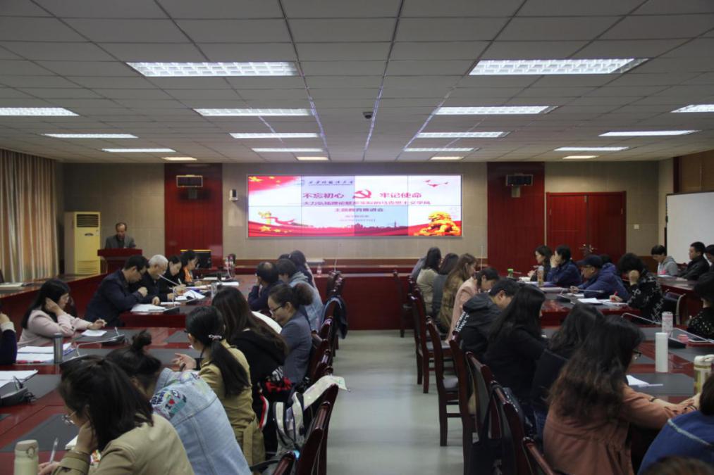 10月31日中午,根据省委“不忘初心、牢记使命”主题教育第六巡回指导组和学校党委安排部署,NG体育 在实验楼B区302教室召开“大力弘扬理论联系实际的马克思主义学风”主题教育推进会。NG体育 院长杨霞、党委书记周龙、副院长郑海平、党委副书记梅林竹、学院全体教职工及研究生代表参加会议。会议由党委书记周龙主持。