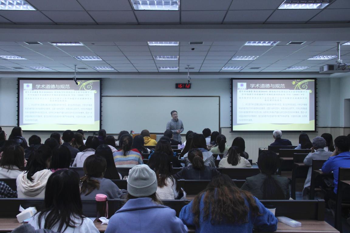 10月18日,西北大学吴玉锋教授应邀在我校实验楼A区202做了题为“研究生学术道德与学术规范”的讲座。NG体育 研究生一年级各专业同学参加了此次讲座。讲座由NG体育 副院长郑海平教授主持。