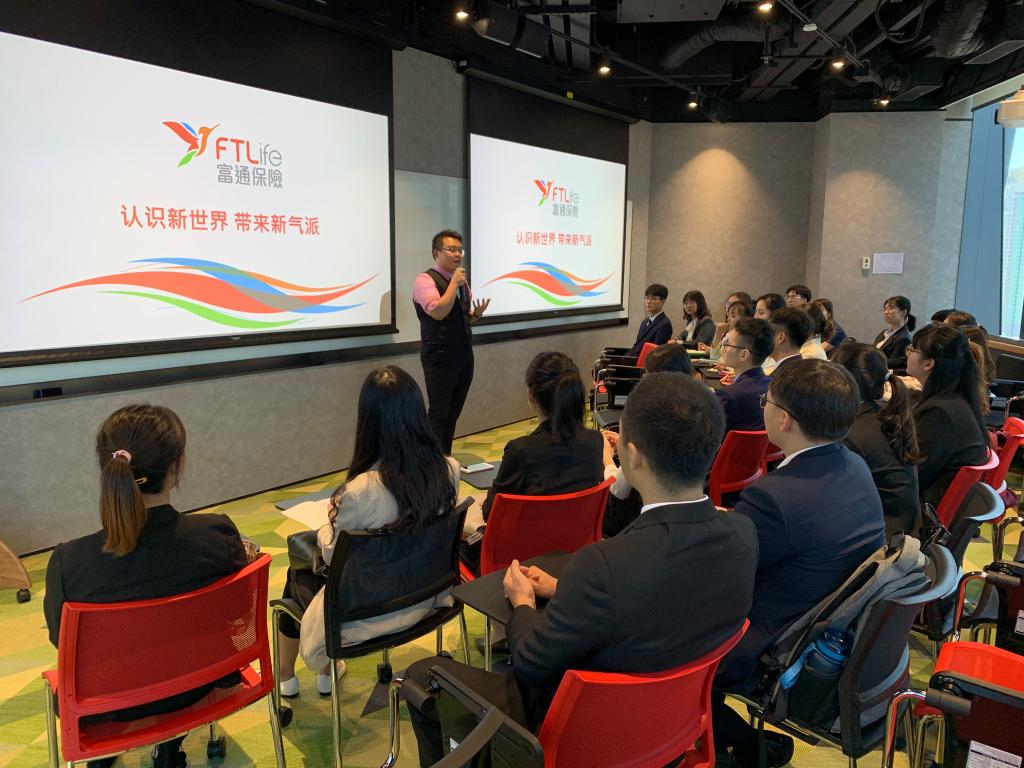 实习期间,富通集团为实习学生安排了内容丰富的实习项目。由4位企业部门经理担任小组导师,亲自指导学生实习工作。每位学生都深入企业具体职位,就基金投资策略、世界金融环境分析、风险管理等模块知识进行学习,参与完成产品发布会前期准备、presentation成果展示评比、基金风暴等实践活动,亲身体验商业管理知识的实际运用,真正做到从理论走向实践。实习结束时,企业导师们通过评比各小组展示的商业策划书,并结合前四天的实习情况进行打分,对优秀小组予以了表彰奖励。富通集团副总裁、首席代理人战略拓展总监王巍与高级区域经理潘万敏等亲自与实习学生对话,介绍香港富通集团“龙计划”,针对学生赴港学习工作开展职业生涯规划,分享工作经验,帮助学生更好地了解在富通集团工作的机会与前景。