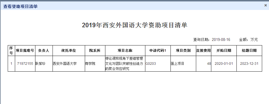 近日,国家自然科学基金委员会公布了2019年国家自然科学基金评审结果,学院耿紫珍副教授获批1项国家自然科学基金面上项目资助,资助金额48万元。面上项目是自然科学基金资助体系中的主要部分,包括自由申请、青年科学基金和地区科学基金3个亚类,其资助经费占自然科学基金项目总经费的60%以上,主要支持科技工作者在国家自然科学基金资助范围内自由选题,开展创新性的科学研究,资助期限一般为3年。
