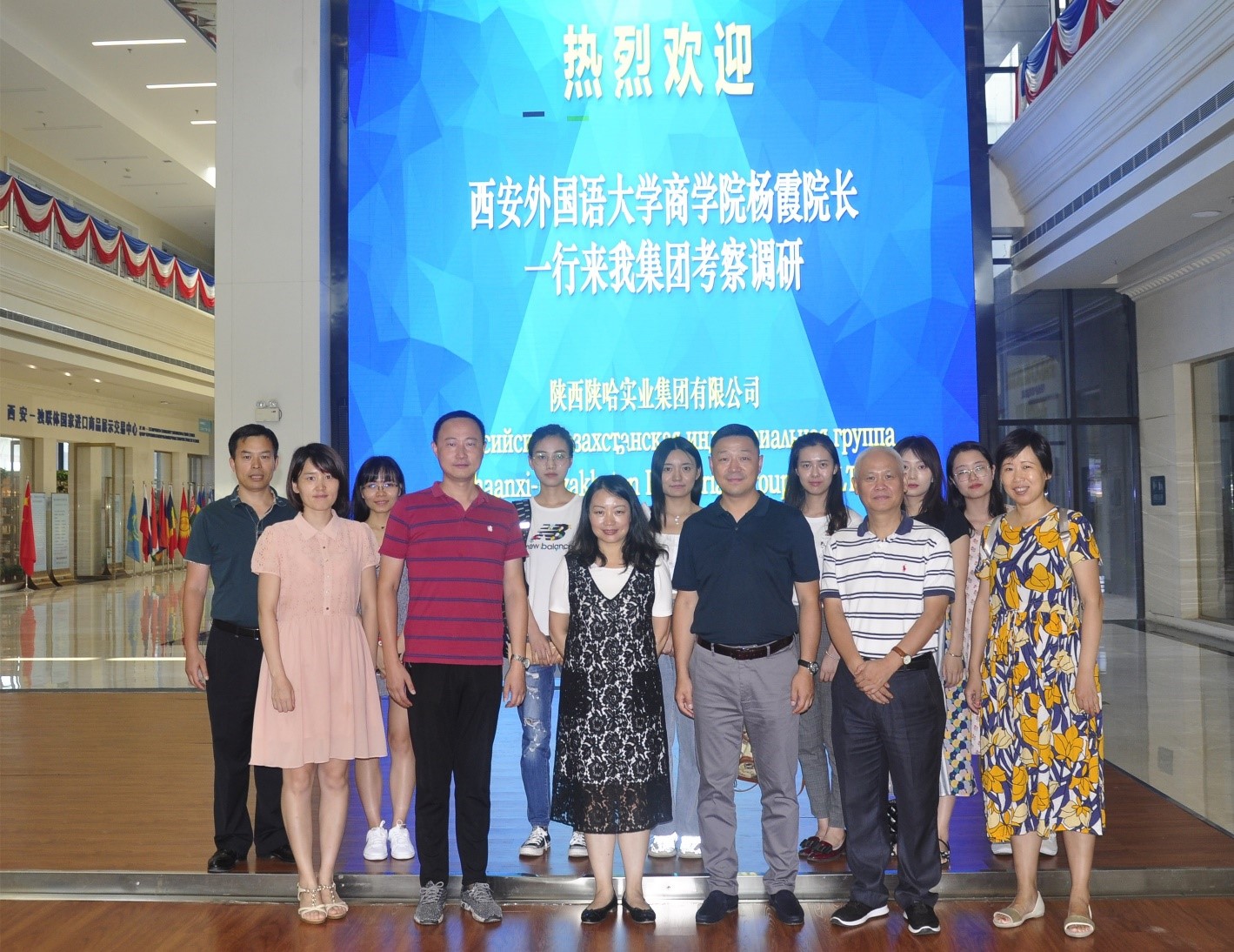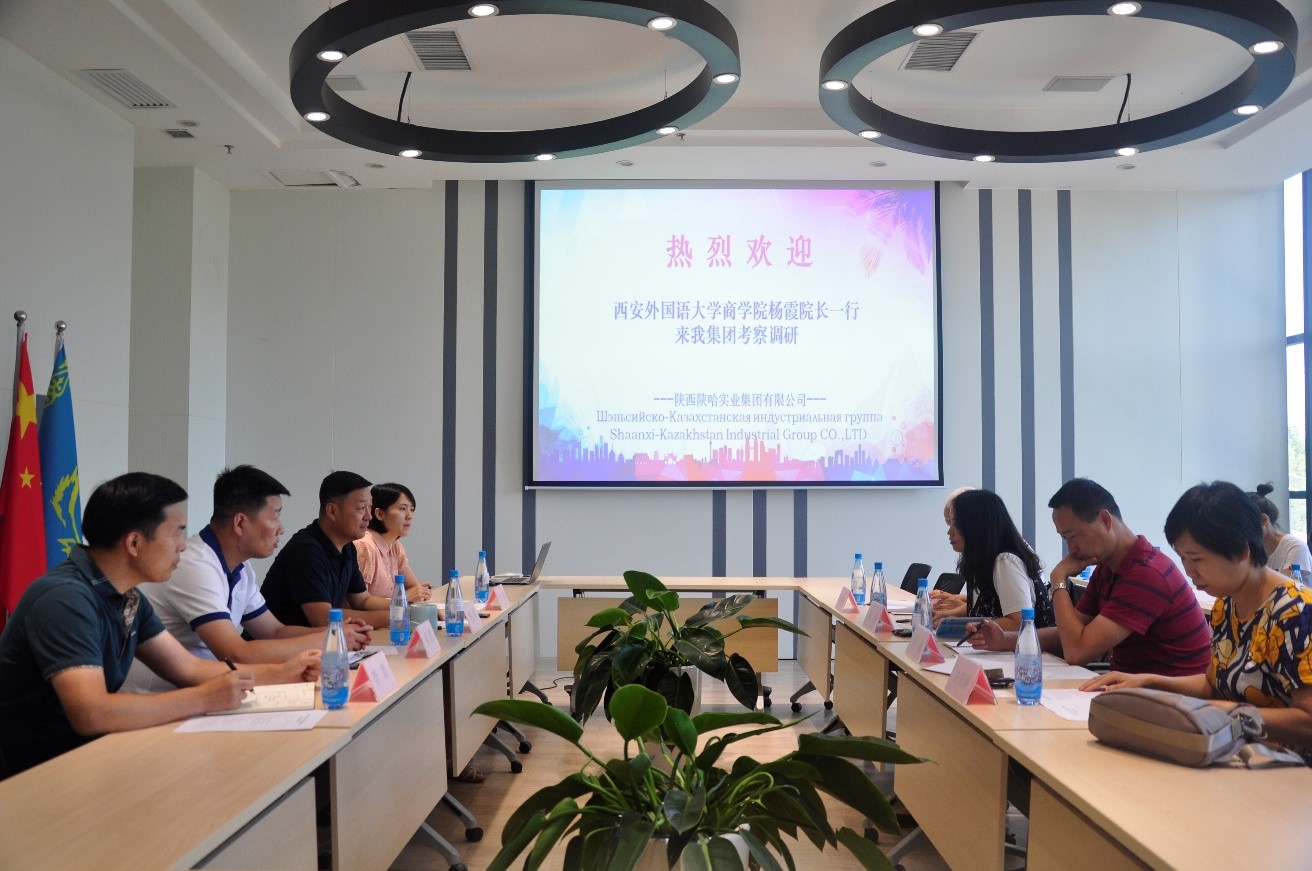 调研师生首先来到位于西安国际港务区的陕哈集团总部了解公司经营情况。陕哈实业集团有限公司于2017年8月在陕西省自贸区注册成立,是一家立足于中国陕西省与哈萨克斯坦共和国“一带一路”,促进两地全方位合作,推动经济和人文领域合作发展的企业。在产能投资、园区建设、贸易促进、政务交流、文化交往、教育培养、科技转化、物流通道、旅游开发、基础建设、咨询服务等主要业务领域进行发展,成为陕哈两地跨国合作的桥梁和纽带。