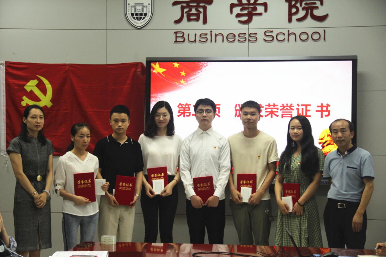 为了进一步提升毕业生党员的思想政治素质,增强党性修养,强化党的意识,根据我校《关于做好2019届毕业生党员教育管理和服务工作的通知》要求,NG体育 党委于2019年6月20日在G210举办“我为党旗添光彩”毕业生党员主题党日活动,学院党委书记周龙、副书记梅林竹、学工办主任常姗姗、各党支部书记、全体毕业生党员参加了本次活动。活动由院商务英语专业党支部书记、毕业班辅导员李静主持。