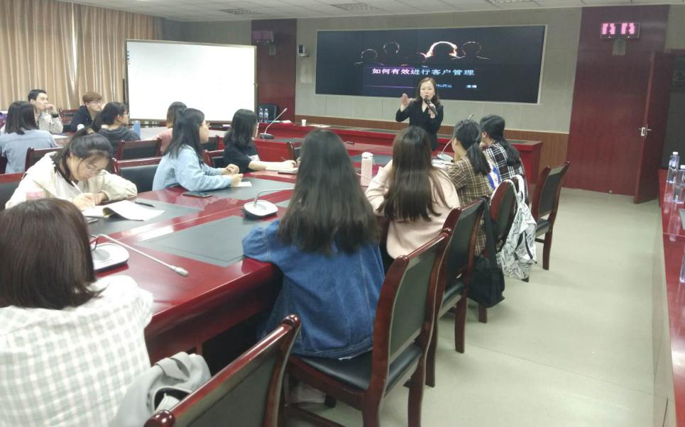 随后谭老师将客户管理与销售技巧相结合以通俗易懂的方式向同学们讲解了如何进行有效的客户管理,谭老师结合自己的创业经历,以现实案例的形式向同学们介绍了客户管理工具的原理与行业应用。谭娟老师说,客户管理绝不是独立存在的,要结合目标群体的特点、产品的特性、营销战略及策略来制定和执行。例如养发护发行业,客户管理就要根据性别、年龄、收入、职业和发质等因素来区分不同的客户管理方式,这样才能提高管理效率,提升管理效果。