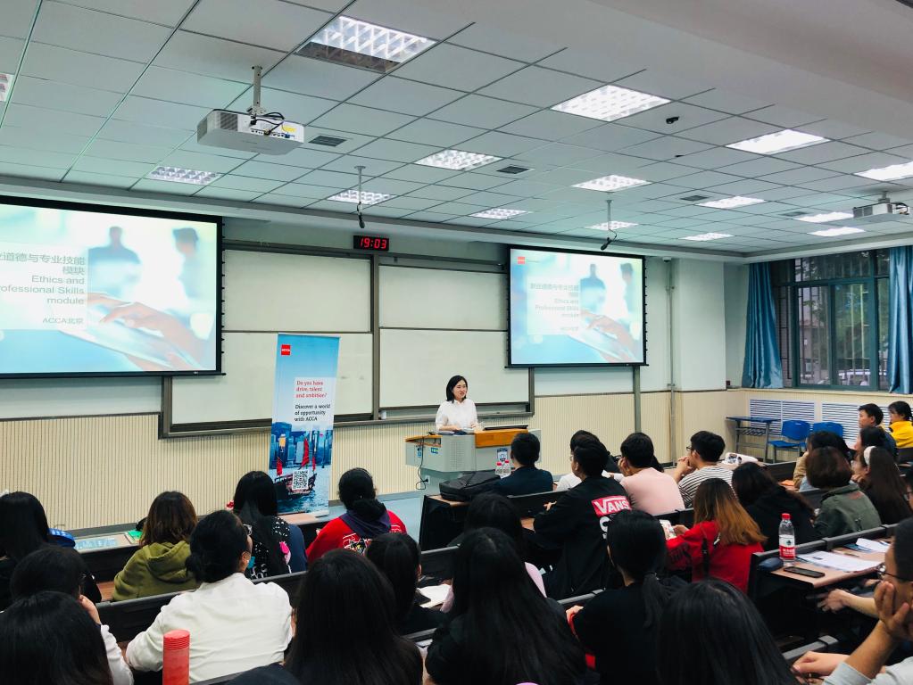 4月29日晚,商学院“ACCA职业道德与专业技能模块(EPSM)课程指导与会员职业发展分享会”在实验楼A区102举行,ACCA教育及学员发展经理张莉娜女士、ACCA教育及发展主任刘芳女士参加会议。本次分享会特邀3位ACCA会员作为嘉宾,分别为我校07级会计ACCA专业毕业生、中国电建集团西北勘测设计研究院有限公司杨晓先生、西安中科光机投资股份有限公司财务副总监李钰女士、中国海升果汁控股公司证券部经理卢青先生。NG体育 辅导员及ACCA教改班和MPAcc共200余名学生参与活动,会议由张莉娜女士主持。