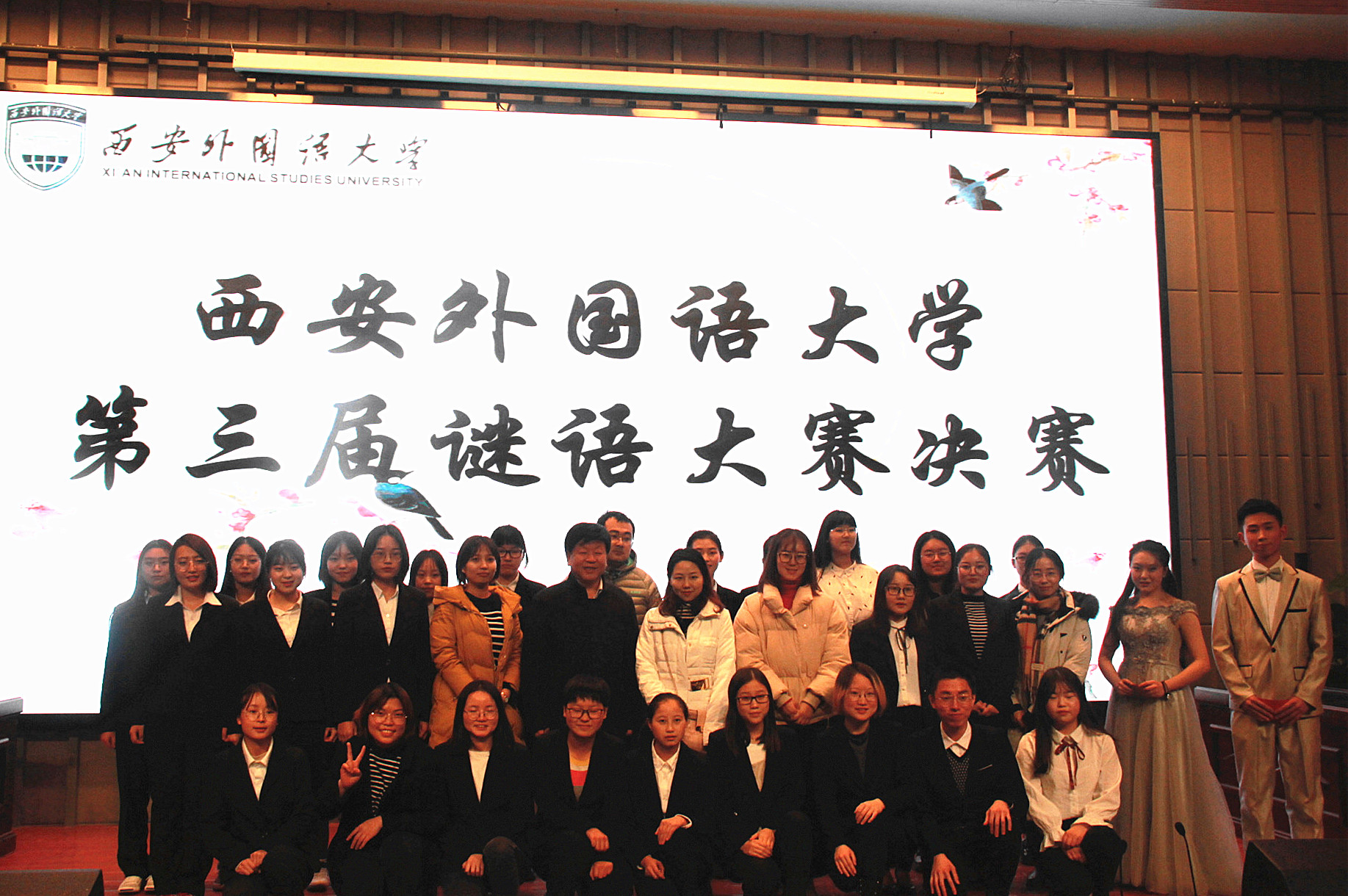 为传承中华优秀传统文化,弘扬中华民族精神,由共青团西安外国语大学委员会主办,NG体育 分团委承办,以“乐享文化,趣味猜谜”为主题的第三届谜语大赛决赛于12月13日下午19时在JA111举行。本次比赛特邀省级名师、中国语言文学学院张保宁教授,中国语言文学学院副院长董佳老师担任大赛评委,出席本次比赛的嘉宾有校团委副书记王娜、商院学工办主任兼团工委书记常姗姗以及NG体育 各年级辅导员,同时来自各学院近300名亲友团在现场观看了比赛。