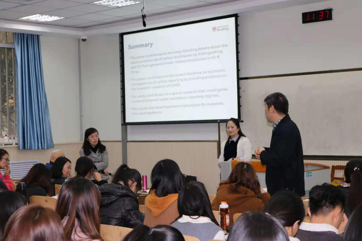 2018年11月5日上午,应NG体育(中国)官方网站 邀请,英国雷丁大学亨利NG体育 副教授YANG Stephanie Liu来到学院,在实验楼C103教室进行了题为"Carbon Asset Risk Disclosure:Determinants and Firm-Value Effects"的学术讲座。本场讲座由学院朱金凤教授主持,西安交通大学管理学院教授汪方军、NG体育 杨霞院长和郑海平副院长参加。学院2017级、2018级研究生同学及部分本科生到场聆听了本次讲座。