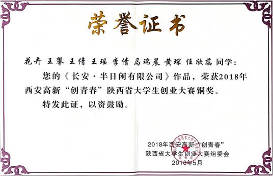 2018“创青春”陕西省铜奖