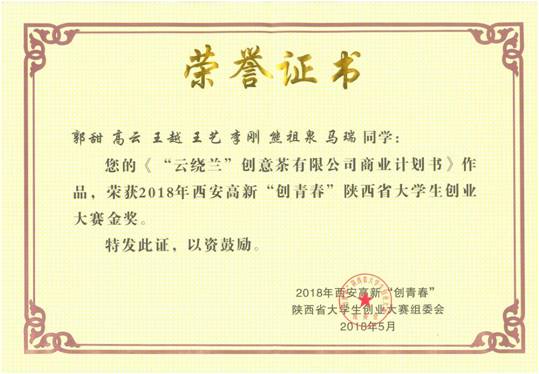 2018“创青春”陕西省金奖