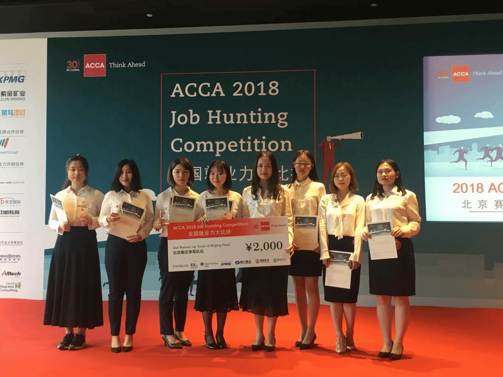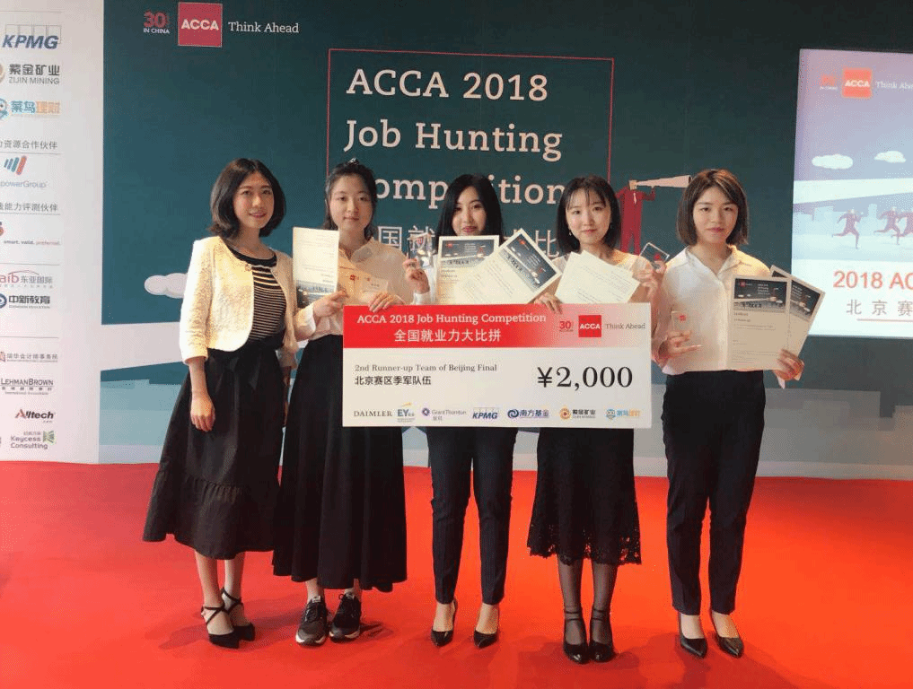 2018年ACCA全国就业力大比拼(ACCA Job Hunting Competition)北方赛区半决赛及决赛于5月16-18日在北京新国贸饭店举行。由我院2015级ACCA教改班学生孙瑶、叶菁菁、刘宸宸和段令闻组成西安外国语大学代表队,凭借扎实的语言能力以及专业素养,经过连续两天的激烈鏖战,最终,我校与中央财经大学并列荣获北方赛区季军,西安交通大学、天津财经大学分别荣获冠亚军。