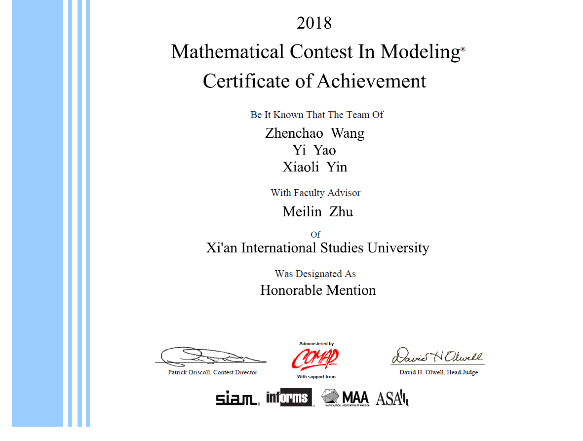 我院高度重视此次比赛,提前筹划,统一协调,组建了以朱美琳、王敏、单春霞等老师为主的专业教师指导团队,以及以郑晏老师为主的英语写作指导团队。举办了院内数学建模竞赛,利用节假日对学生进行集中培训,从数学建模理论与实践、研究命题遴选、论证、求解、英文学术撰写规范等多方位全面提升学生实践能力。本次学生在国际数学建模竞赛中获奖是我院不断深化“专业与语言深度融合”的教学改革,坚持国际化、应用型、复合型人才培养理念的重要体现。