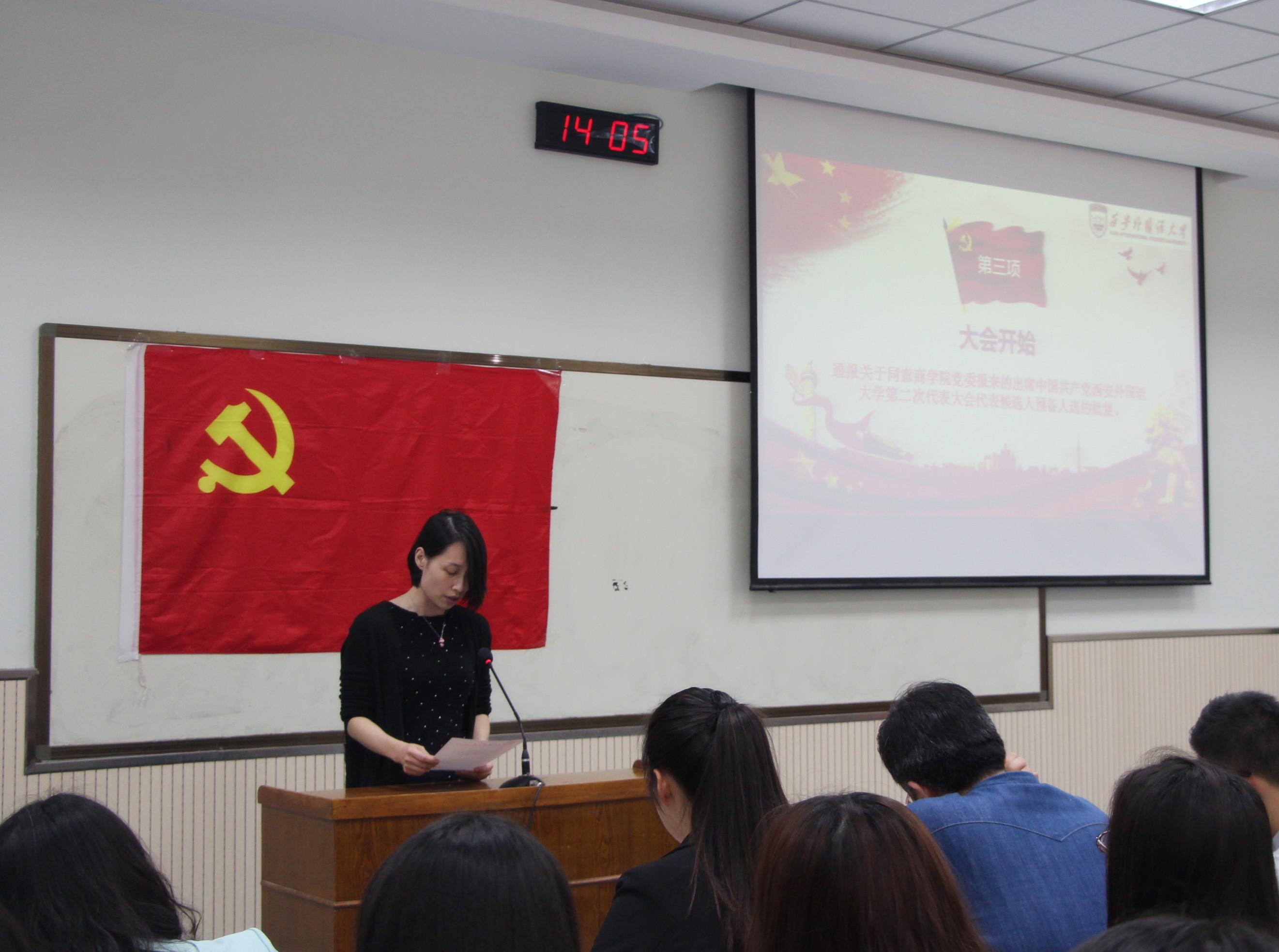 本次大会应到会党员142名,实到会党员128名,符合开会条件。周书记首先向全体党员宣布选举办法,接着以举手表决方式通过了监票人、计票人名单,最后以无记名投票方式,差额选举产生了9名同志为出席中共西安外国语大学第二次党代会代表。