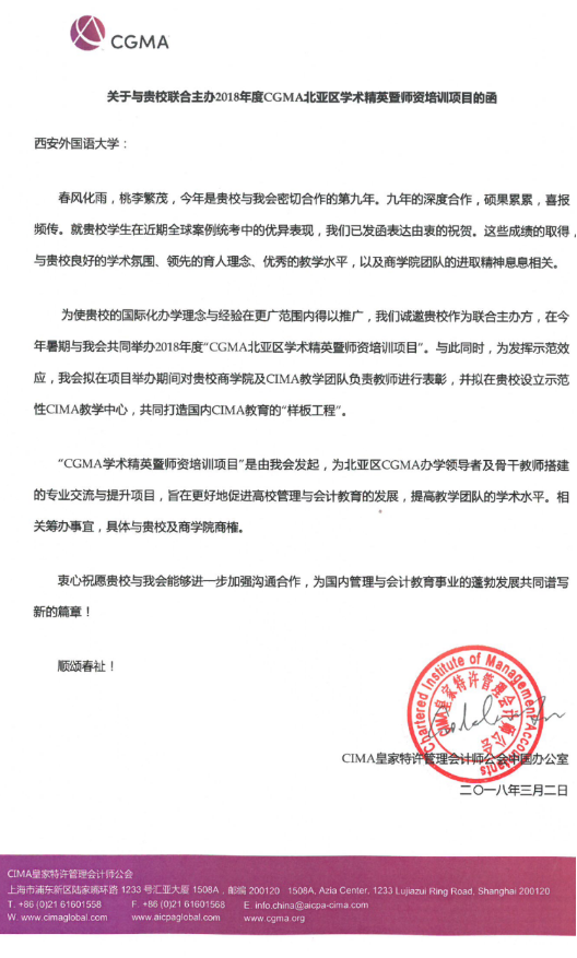 鉴于我院在CIMA人才培养方面所取得的优异成绩及良好的教学质量,CIMA北亚区总部特邀请我院共同举办“2018年北亚区学术精英暨师资培训项目”。