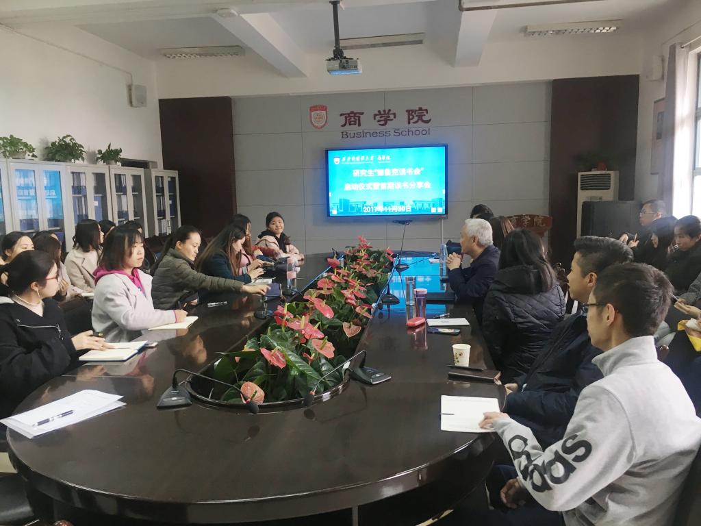 为了让更多青年学子感受到德鲁克闪光的管理思想宝库,激发青年学子阅读经典书籍的兴趣和学术研究的热情,构建有特色的书香校园文化,NG体育 于2017年11月30日下午在G210会议室举行研究生“德鲁克读书会”启动仪式暨首期读书分享活动。NG体育 副院长郑海平老师和工商管理教研室崔杰老师应邀出席,NG体育 研究生会全体成员、各班班委以及部分学生代表参加。仪式由研究生辅导员熊华宁老师主持。