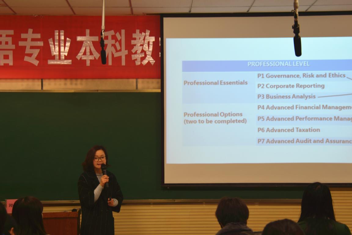本次开放周依托NG体育 商务英语优质师资,以“商务英语实践、综合实训教学及ACCA/CIMA方向教改班课程建设”为核心,由专家讲座、研讨课、公开示范课三部分组成。教育部“英语专业综合改革试点”项目负责人、陕西省“英语写作系列课程”教学团队带头人姜亚军老师作了题为“商务英语写作教学:问题与思考”的讲座;国务院学位委员会第七届外语学科评议组成员、教育部高等学校商务英语专业协作组副组长、陕西省项目专家学者彭青龙老师作了题为“外语类学生的核心素养与经典阅读”的讲座;《外语教学》暨《西安外国语大学学报》执行主编王和平老师作了题为“外语学术期刊论文写作与发表”的讲座;教育部高等学校商务英语专业教学协作组成员、NG体育 院长杨霞老师作了题为“商务英语专业知识体系构建的再思考”的讲座;刘军伟、王伟、孙婧雯、郑晏4位骨干教师同与会教师研讨了商务英语相关课程的设计理念、教学模式与实践方法等;卢珊、唐慧利、毕可佳、申海等7名优秀青年教师公开展示了商务英语ACCA/CIMA等主要核心课程的教学及实训。