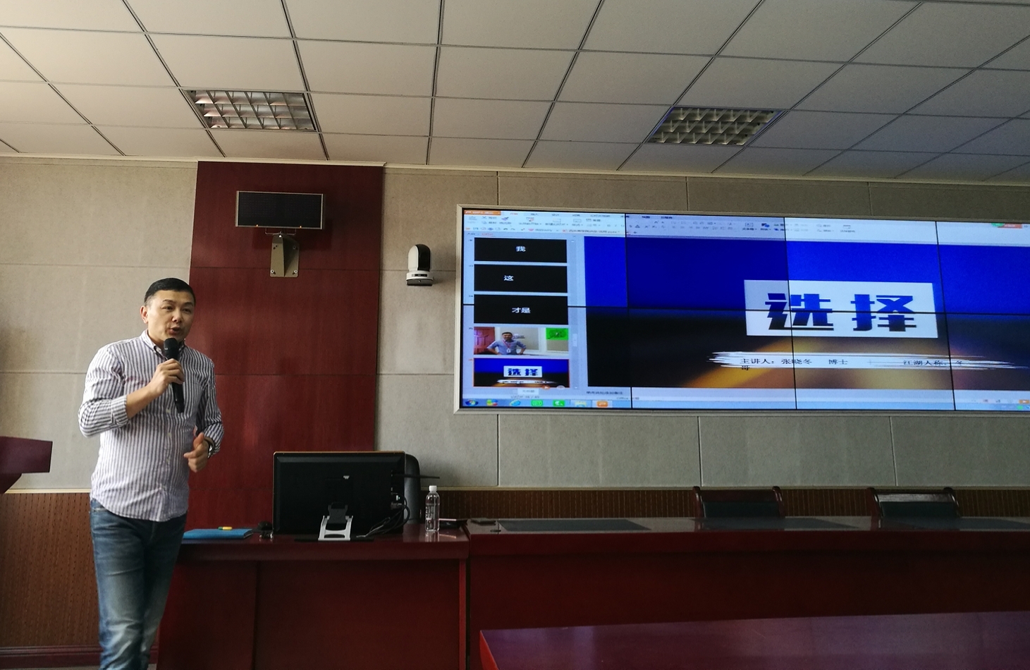 讲座伊始,张老师用一段自己拍摄的视频为导入,引出“选择”的主题,并以自己的人生经历为线索,与大家分享了他的读书之路、摄影心路以及在翻译界、法学界、金融界与艺术界不断选择的过程和跨界成功的经验,勉励同学们多读书、善读书、读好书,理性思考,自信生活,坚守信念,以积极、健康的心态面对挫折与考验,鼓励同学们在广泛涉猎多学科的基础上,树立正确的世界观、价值观和人生观。张老师用一个个生动的事例深入浅出地告诉我们:人一辈子都在做选择题,要正确认识自己的个性和特点,清楚自己想要什么,在选择的过程中保持个性,保持冷静,不随波逐流,学会放弃,不断学习和思考。精彩的讲座之后,师生积极提问互动,张老师一一耐心解答,现场气氛活跃。