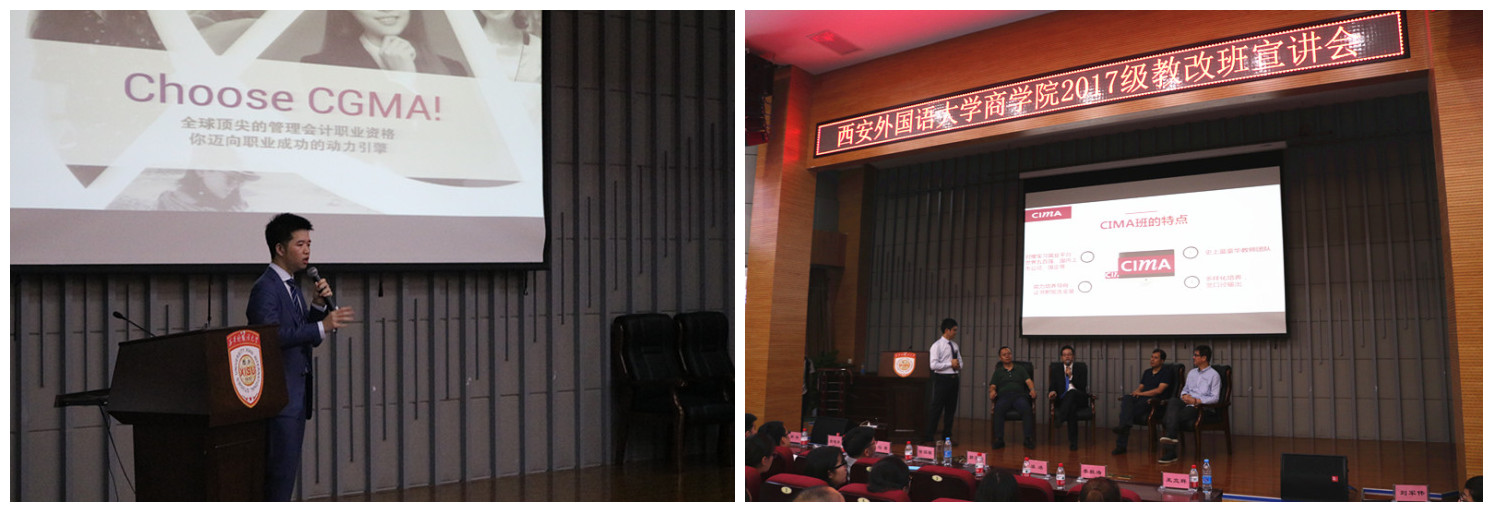 ACCA教改班介绍环节中,郭涛从ACCA的发展历程入手,展示了ACCA学员的就业优势,即国际化视野、良好的沟通能力、扎实的财务基础、高效的时间管理以及持之以恒的耐性。同时,就企业对ACCA的激励机制以及ACCA总部对学员从注册到就业的全程支持做出详细讲解。随后,NG体育 ACCA优秀教师代表孙婧雯从NG体育 人才培养理念、教学管理、优秀教师团队等方面介绍ACCA的独特优势,并展示了NG体育 优秀毕业生的情况,以ACCA班训“志存高远,脚踏实地”教育新生做事应持之以恒,鼓励新生选择ACCA、坚持ACCA、爱上ACCA,并走向属于自己的成功之路。