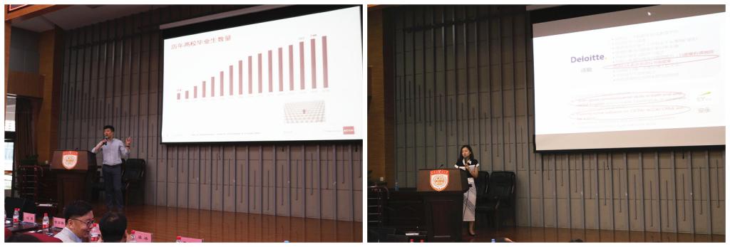 在CIMA教改班推介环节,周旭东从不同的方面阐释了CIMA在中国的发展前景及国际知名度。从就业率、薪酬等方面对比了传统财务会计与管理会计的区别,通过对合作雇主的采访展现了优秀CIMA会员的风采。NG体育 CIMA团队优秀教师代表毕可佳在解析CIMA时说到,在人工智能化、移动互联网、大数据时代来临的当下,专业与技能的结合尤为重要。他在介绍NG体育 CIMA教改班的培养方向、教学特色及优秀师资的同时,也展示了学生在竞赛中取得的优异成绩以及毕业生去向。最后,毕老师邀请四位企业雇主进行互动访谈,并就CIMA未来发展方向及前景为新生提出宝贵建议。